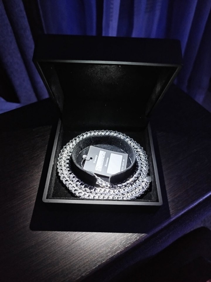 Полновесная цепочка. Очень популярное среди мужчин плетение «Рамзес», также на просторах интернета данное плетение можно увидеть под названием «Двойной обратный бисмарк». В особенности мужское внимание привлекают толстые серебряные цепочки из «Двойного обратного бисмарка» с размерами близкими к размерам на фото. И тем не менее, если такая цепочка лично для Вас смотрится на шее весьма громоздкой или наоборот маловатой, то Вы без особого труда можете откорректировать практически любой её параметр под свои вкусы, в том числе есть возможность выбрать как с чернением, так и нечернёную или же с родированием.